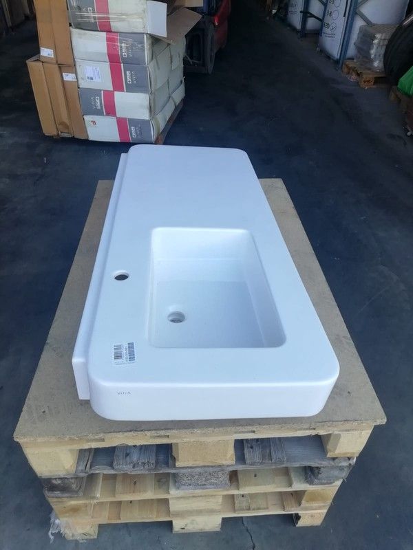 Lavabo suspendu 130cm, Sofcube by Vitra, avec sinus décalé vers la gauche.